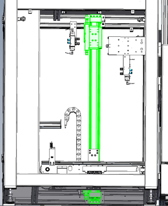 Ziel ist der Austausch der im Bild grün markierten Achse/Hubeinheit.