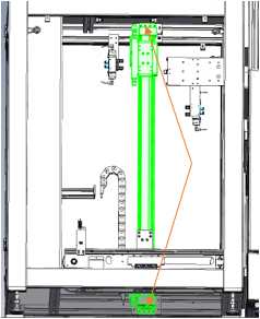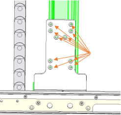 Tipp: Zur besseren Zugänglichkeit der unteren Schrauben kann es sich empfehlen diese vor lösen der Transportbandeinheit zu entfernen. Diese sollte dabei nicht am tiefsten Punkt stehen. Anschließend kann die Achse vorsichtig nach ganz unten gefahren werden und mit Schritt 1 begonnen werden.